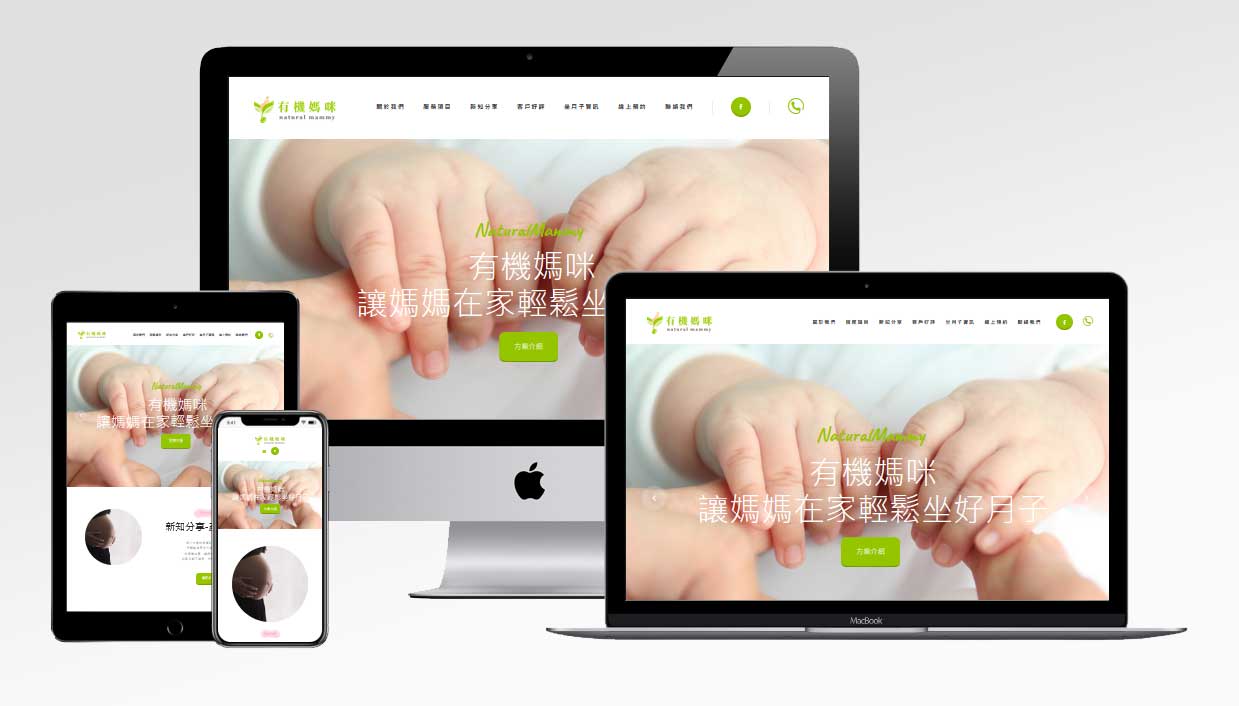 有機媽咪為專業的到府坐月子機構,擁有許多具備保姆證照或坐月子結訓課程的人員,在專業之下更具有豐富到府照料產婦的經驗,依照產後媽咪生活作息不同需求,為產後媽咪及寶寶做全方位照料。除了準媽咪外,也持續為媽咪們第2胎及第3胎做全方位照料。